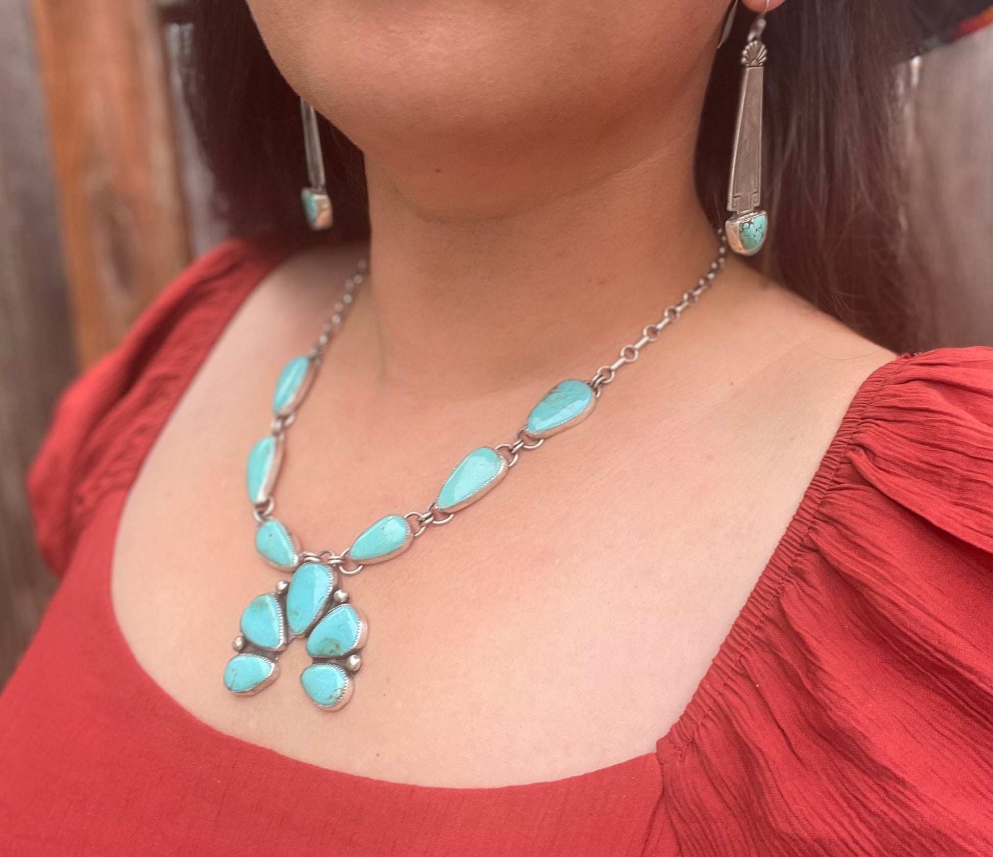 Genuine Kingman Gold turquoise squash blossom statement necklace