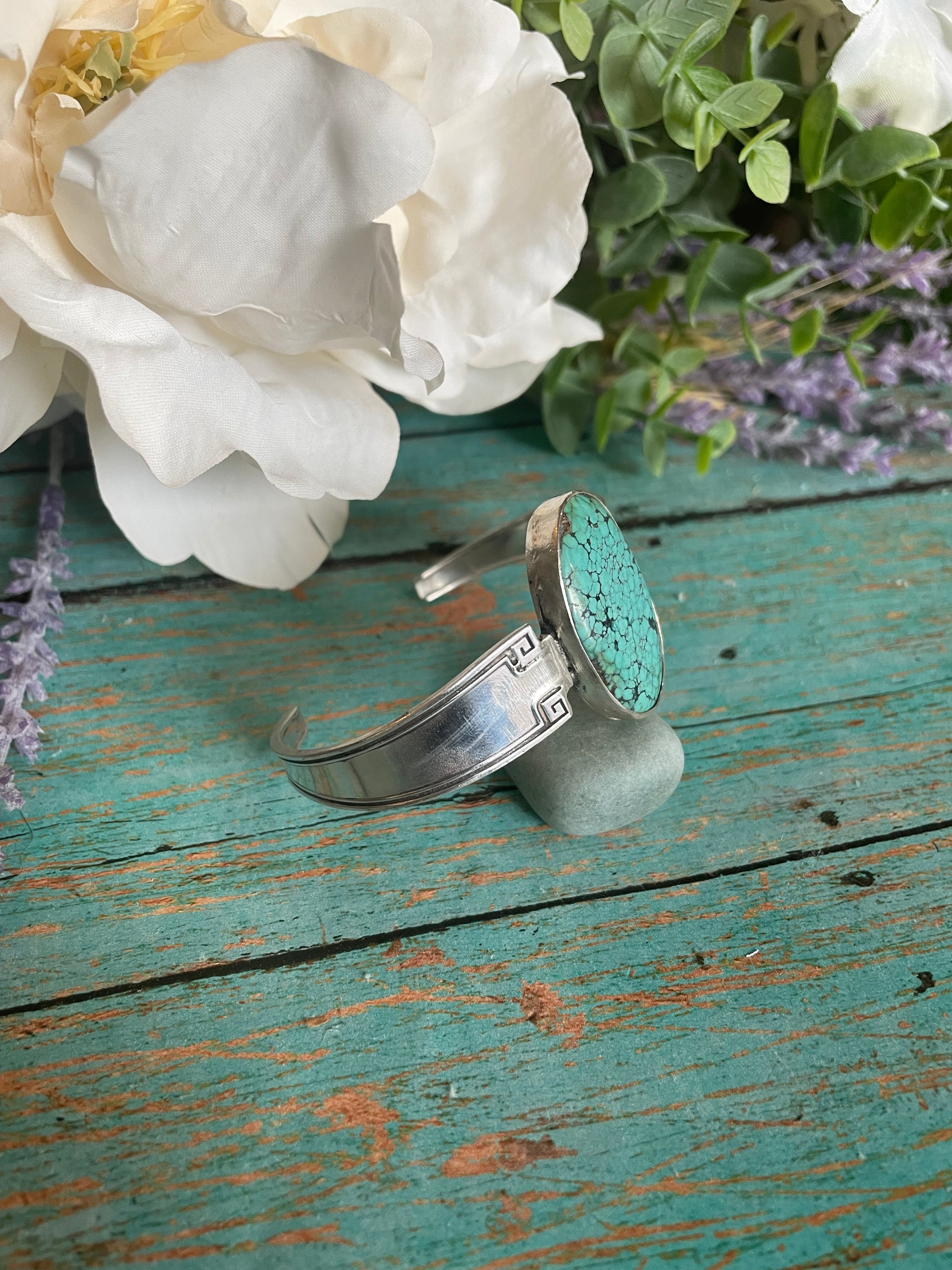 Genuine turquoise cuff made with up-cycled vintage solid sterling silver spoons